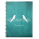 Record your thoughts with a Teal Lovebirds Floral Vine Personalised Notebook. Notebook design features a teal grunge background adorned with a floral vine and a pair of resting birds. Personalise with your own name or create a unique gift for friends or family. Additional items available with this design as well. Please contact me directly for assistance with personalisation.