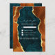 Teal Marble, Burnt Orange & Gold Agate RSVP Invitation