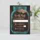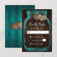 Teal Mason Jar Burlap Hearts Wood Wedding RSVP Card