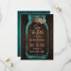 Rustic teal wedding save the date card featuring a mason jar and burlap hearts against a barn wood background. Easily personalize this romantic rustic teal wedding save the date online. Matching items available to complement this teal wedding save the date card.