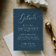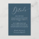Elegant and minimal wedding invitation enclosure card featuring modern script text at the top on a teal background. Customise this invite by adding information on your wedding including reception, accommodation, and website. Perfect for any season.