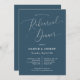 Minimal wedding rehearsal dinner invitation with modern script font on a teal background. This template already has texts that has all the information you need for your event. Texts are easily customisable online.