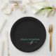 Teal Modern Black Simple Script Monogram Name Paper Plate