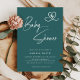 Teal Modern Script Baby Shower Photo Invitation