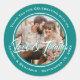 Teal Modern Script Wedding Photo Favour Classic Round Sticker