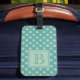 Teal Monogram Polka Dot Pattern Luggage Tag