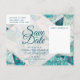 Teal Mosaic Marble Triangles Save the Date Announcement Postcard