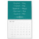Organize your year with a global perspective using this sleek, multilingual custom wall calendar. Featuring the months of the year translated into English, French, Spanish, German, and Swahili, this minimalist teal black-and-white design blends sophisticated typography with practical functionality. Perfect for language learners, world travelers, or anyone looking to add a touch of international flair to their home or office. Fully customizable to suit your personal style or gifting needs.