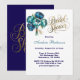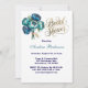 Teal Navy Blue Peony Flowers Bridal Shower Invitation
