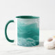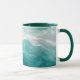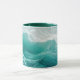 The image shows a close-up view of ocean waves. The water is a gradient of teal and white, with the darker teal at the bottom transitioning to lighter shades and white at the top. The waves are textured and appear to be in motion, creating a dynamic and visually appealing scene. The overall mood is serene and calming, evoking a sense of the ocean's power and beauty.