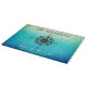 Teal Ombre Sea Nautical Glass Cutting Board. A compass rose to keep your ocean bearings. Enjoy the stylish optical illusion effect with the Teal to blue to turquoise tones of the ombre background. Add your own name, sentiment, greetings, or monogram to customise. Nautical, Tropical, Beach, Coastal style in this design for your kitchen decor.