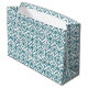Teal on White Ethnic Pattern, Flowers, Chevrons Large Gift Bag