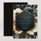 A rich tapestry of deep teal blossoms and creamy petals creates a luxurious, opulent feel. This design evokes a mood of sophisticated romance with its dark, moody floral arrangement. The dramatic color palette suggests an elegant evening event.