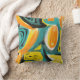 Contemporary abstract painting in bright teal, orange, yellow and black.. Bring some bold, expressive pillow art into your home. Customise the size to your liking. Original painting, Untitled No. 62 by Leslie Newman.