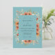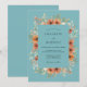 A vibrant burst of coral-orange blossoms and soft green foliage encircles a serene teal background. This artistic arrangement evokes a sense of natural beauty and joyful celebration.