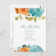 Teal Orange Boho Floral Fall Save The Date Postcard