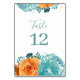 Teal Orange Boho Floral terracotta Table Number