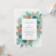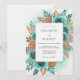 This design features a dramatic watercolor wash of teal, accented with vibrant burnt orange blossoms and autumnal foliage. The artistic brushstrokes create a rich, botanical-inspired aesthetic with a touch of rustic charm. Perfect for a romantic, nature-infused occasion.