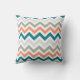 Chic feminine teal, orange, sage, grey and white chevron pattern zigzags pillow.