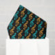 This tissue paper design features many treble clef musical symbols coloured teal or orange, on a black background.