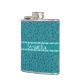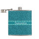 Chic flask, with graphics of a faux teal coloured ostrich leather. A teal band, across the middle of the flask has white custom text ready to personalise.