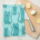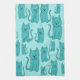 Teal Pattern of Cute Cats. Tea Towel