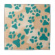 Teal Paw Print Pattern Tile