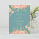 Delicate peach blossoms and soft greenery cascade across a serene teal backdrop, evoking a feeling of romantic whimsy. The floral arrangement suggests the soft petals of roses and the leafy texture of eucalyptus. This design offers a light and airy aesthetic perfect for a graceful occasion.
