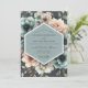 Evoke a sense of moody romance with this elegant artistic design. A stunning arrangement of teal anemones, soft peach roses, and ivory blossoms unfolds against a deep charcoal background. The ethereal, watercolor-style artistry creates a sophisticated and dramatic atmosphere for your nuptials. This botanical composition is perfect for a chic and memorable union.