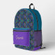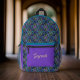 Teal Peacock Feathers and Purple Gold Monogram Printed Backpack