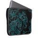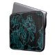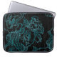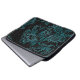 This feminine laptop sleeve features deep teal peonies against a bold black background. A sophisticated and unique fashion statement that adds elegance and style to your tech.