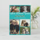 Shades of teal tropical Christmas family photo card with a place for five pictures. Warm Christmas Wishes with starfish and holly design. Dark teal blue frames family photos with a lighter teal colour on reverse.
