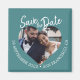 Teal photo modern script save the date magnet featuring a heart-shaped photo window, deep teal background, and hand-lettered script text in white. This design highlights your engagement photo while clearly presenting the wedding date and location in a bold yet refined color palette that suits both modern and classic celebrations. Ideal for weddings, destination events, vow renewals, or elegant engagements with a distinctive, timeless look. Easily personalize with your details.