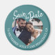 Teal photo modern script save the date magnet featuring a heart-shaped photo window, deep teal background, and hand-lettered script text in white. This design highlights your engagement photo while clearly presenting the wedding date and location in a bold yet refined color palette that suits both modern and classic celebrations. Ideal for weddings, destination events, vow renewals, or elegant engagements with a distinctive, timeless look. Easily personalize with your details.