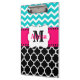 Show off your style in a fun way with this hot pink, teal, and black quatrefoil and chevron modern and trendy personalised clipboard.