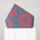 Vibrant eye-catching tissue paper design featuring a seamless pattern composed of geometric shapes in pink and red on a teal background.