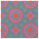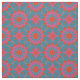 Vibrant fabric design featuring a seamless pattern made of geometric shapes in pink and red on a teal background.