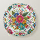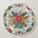 Teal Pink Yellow Colourful Embroidery Style Flower Round Cushion