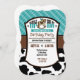Teal Plaid Cowhide Cowboy Birthday Invite