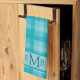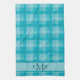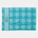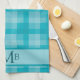 This colourful kitchen towel has a teal plaid pattern with a customisable three-letter monogram. This personalised tea towel can be used as a kitchen accessory hand towel and makes a useful gift for a housewarming, hostess gift, or shower gift.