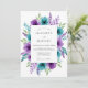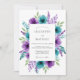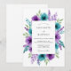 Vibrant watercolor strokes depict a striking palette of deep purple and bright teal. Delicate anemone blooms are surrounded by lush green foliage and soft lavender sprigs, creating a romantic atmosphere. This artistic botanical arrangement brings a fresh, ethereal feel to a special day, perfect for an outdoor spring or summer event.