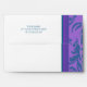 Elegant dark purple and teal turquoise blue A7 greeting card envelope with stylish floral swirls pattern. Customise it with your return address. Available in matching cards and many other wedding products.