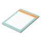 A perfect notepad for quick notes or lists. This personalised notepad features a teal quatrefoil background with an orange band for personalising with a name.
