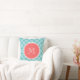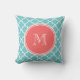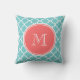 Teal Quatrefoil Pattern, Coral Monogram Cushion