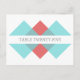 Modern and chic Geometric Triad Wedding Table Number Postcard featuring a stylish triangle design in turquoise and red. Easy to customise, this simple yet elegant design can be personalised by adding the appropriate table number(s) in the text field provided. Click "Customise It" to find more personalisation options.