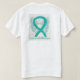 The painting of a teal ribbon guardian angel is displayed on this custom cause awareness apparel shirts. Personalise the t-shirts on the front and back with your own awareness ribbon message or theme to make special angel ribbon clothing merchandise. The teal awareness angel ribbon tshirt art can be customised with personalised messages to make great cause shirts for fundraiser clothing, custom team walk shirts, personal awareness gifts, or other special cause awareness events or occasions.