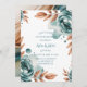 Elegant teal watercolor roses paired with warm copper leaves create a romantic and modern floral frame design. This invitation features floral arrangements in all four corners with a clean white center, perfect for adding your wedding details. Ideal for fall weddings, winter weddings, boho celebrations, and modern romantic themes. Beautiful for invitations, RSVP cards, details cards, programs, and full wedding stationery suites.