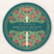 Teal Royal Medieval Gold Sword Wedding Round Paper Coaster