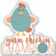 You fought the yarn chicken ... and won!!! Celebrate with this cute design of a yarn chicken and the words declaring you a yarn chicken champion. Available in red/orange, green/brown, teal/rust and blue/purple. Matching products available.