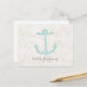 Perfect for a nautical themed wedding is this Rustic Anchor Wedding Table Number Postcard with a teal boat anchor on a light beige marble look background. This classic and simple table card is easy to customise with your wedding details. Find more personalisation options by clicking Customise.